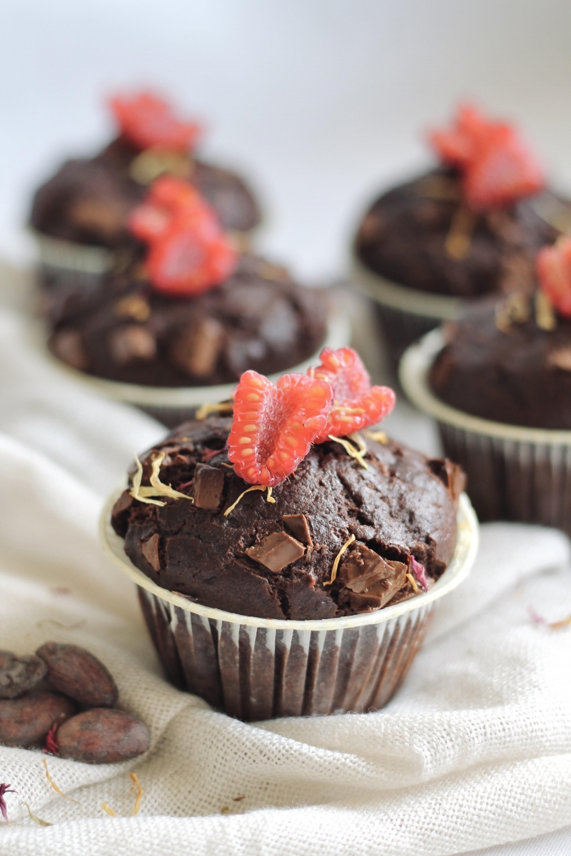 Muffiny můžete ozdobit ovocem, polevou, kousky kakaových bobů apod..